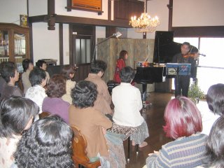 上野氏がドイツに長く在住した間に、あらためて素晴らしさが分かったという日本の曲を中心に演奏された。 使われたヴァイオリンは、なんとモーツアルトと同じ年齢だそうだ。 とても気に入っているのだという低音に深みのある上野氏のヴァイオリンの音色と、 日本で所蔵している人は珍しいというベーゼンドルファーのグランドピアノの吉野氏のやさしい音が融合した息の合ったアンサンブル。 「歳をとると、指はまわらなくなるけど、口がよくまわるようになりました」 という上野氏の気さくなトークで、和やかの雰囲気の中あっという間に時間が過ぎていった。 吉野氏のピアノソロのアンコールはドビュッシーの「月の光」。 まさに月の光が静かに差し込む景色を想像させるような演奏だった。 |