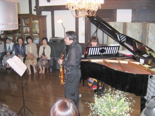 上野氏がドイツに長く在住した間に、あらためて素晴らしさが分かったという日本の曲を中心に演奏された。 使われたヴァイオリンは、なんとモーツアルトと同じ年齢だそうだ。 とても気に入っているのだという低音に深みのある上野氏のヴァイオリンの音色と、 日本で所蔵している人は珍しいというベーゼンドルファーのグランドピアノの吉野氏のやさしい音が融合した息の合ったアンサンブル。 「歳をとると、指はまわらなくなるけど、口がよくまわるようになりました」 という上野氏の気さくなトークで、和やかの雰囲気の中あっという間に時間が過ぎていった。 吉野氏のピアノソロのアンコールはドビュッシーの「月の光」。 まさに月の光が静かに差し込む景色を想像させるような演奏だった。 |